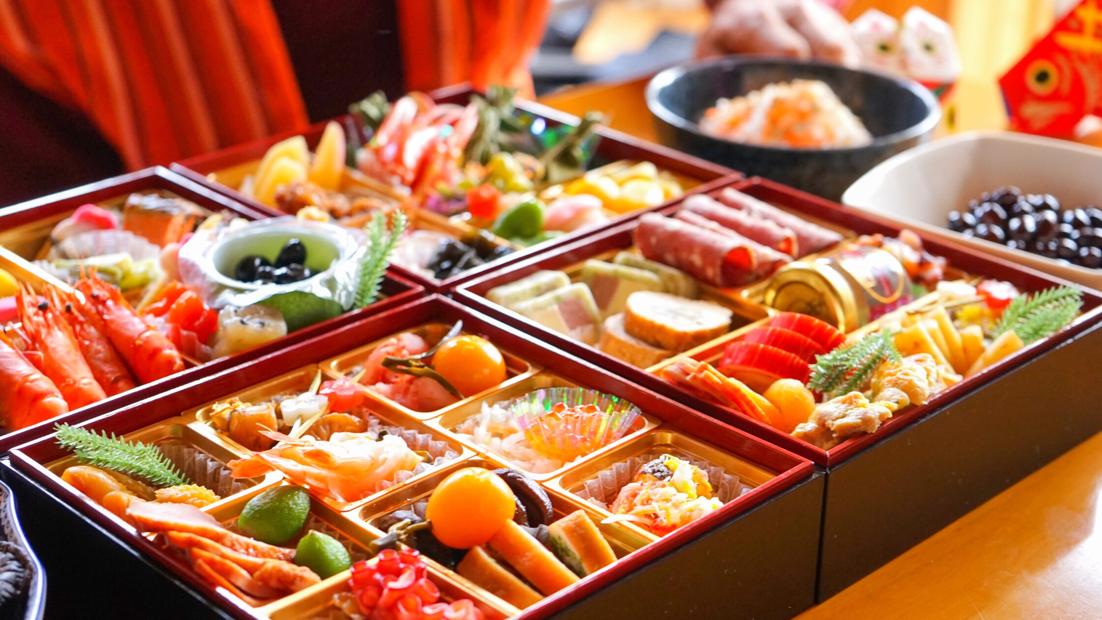 約32cm四方の大きなお重は写真映えもよく、お正月の食卓を豪華に演出してくれます。