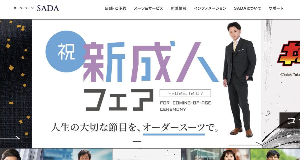 | オーダースーツSADA | 49,280円〜 | 約4週間 | 公式サイト |