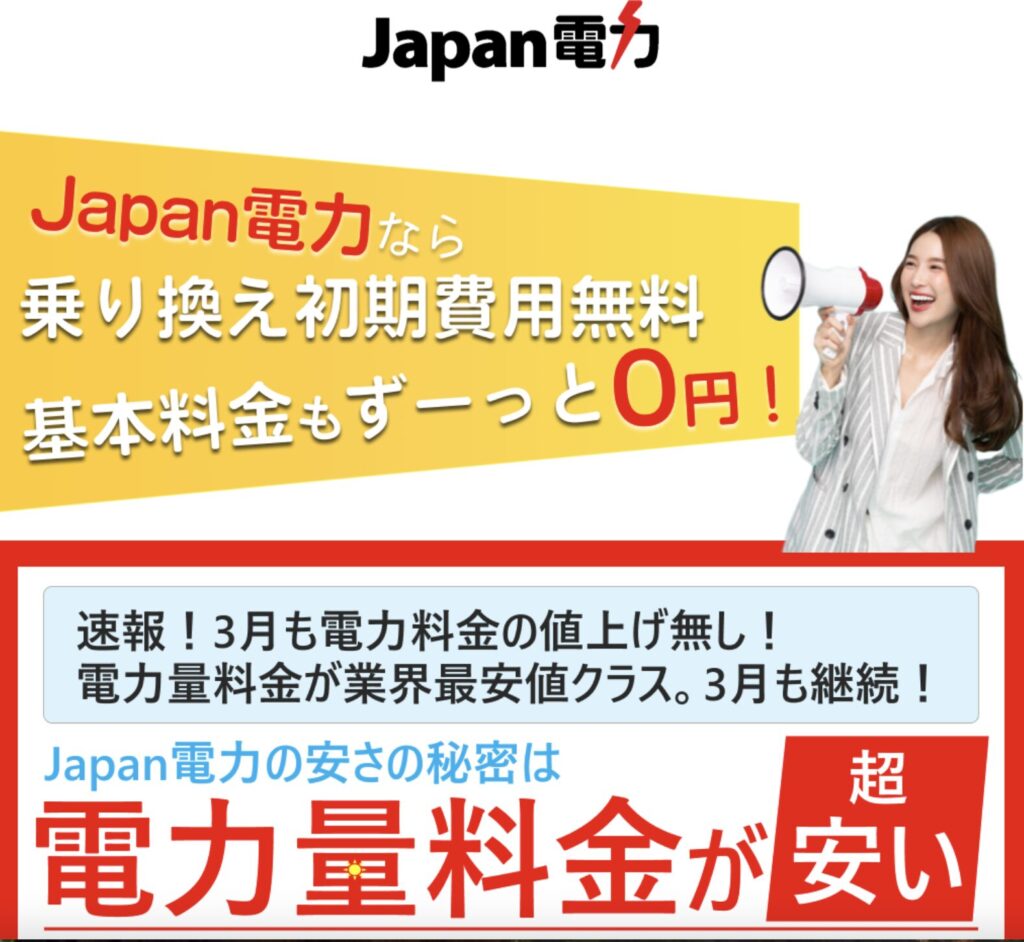 | Japan電力 | 0円 | 使った分だけの明確料金 | 公式サイト |