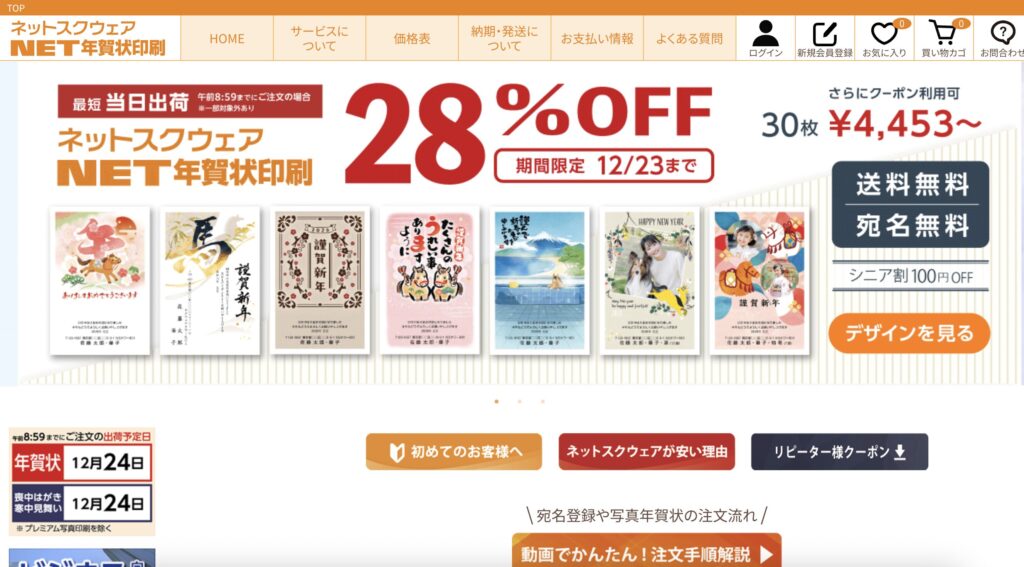 - ネットスクウェアは、価格を抑えたい方、デザインで妥協したくない方、スマホから簡単に注文したい方におすすめです。安さとデザインの両方が揃う、コスパに優れた年賀状印刷サービスです。